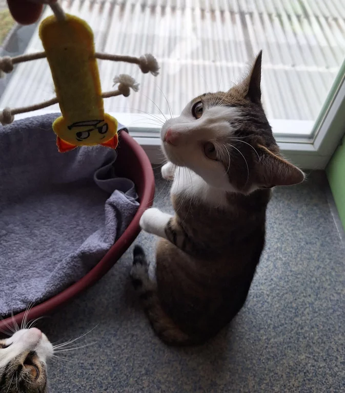Wer will uns zwei kleine Wirbelwinde, die gleichzeitig knallharte Schmusekatzen sind, bei sich aufnehmen? Wir freuen uns schon! 🐾