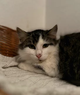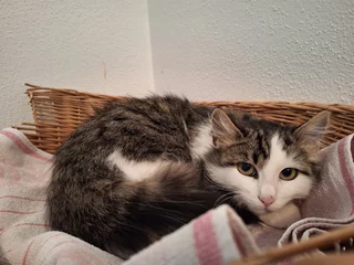 Ich bin etwa 1,5 Jahre alt, kastriert, geimpft, gechipt und bereit, auszuziehen. Ich bin noch ein bisschen schüchtern und sage manchmal mit Fauchen „Stopp!“, wenn mich etwas verunsichert, weil ich es noch nicht kenne. Aber wenn man das versteht und vorsichtig ist, lasse ich mich schon streicheln. Das Leben "draussen" war nicht einfach für mich, aber ich lerne immer mehr, wie schön es ist, bei lieben Menschen zu leben.